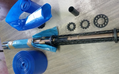 Capa azul em polietileno usado no isolamento do trecho livre do tirante nos tamanhos 4”, 5” e 6”.